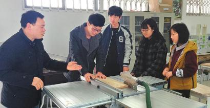四川師范大學創(chuàng)新創(chuàng)業(yè)導師指導學生團隊進行智能家具設計與制作。四川師范大學供圖