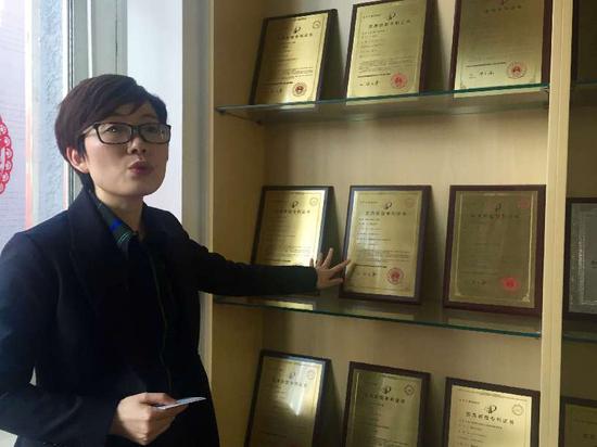 王瞾向記者介紹其所獲專利情況。聶晨靜 攝