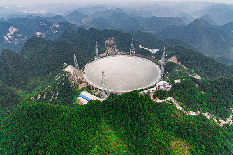 這是FAST工程全景(2016年9月7日攝)。2016年9月25日,有著“超級天眼”之稱的500米口徑球面射電望遠鏡(FAST)在貴州平塘的喀斯特洼坑中落成啟用。
