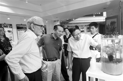 題圖為2017年9月,海淀留創園主任趙新良向諾貝爾化學獎獲得者、美國科學院院士羅伯特科爾介紹園區企業的創新產品。