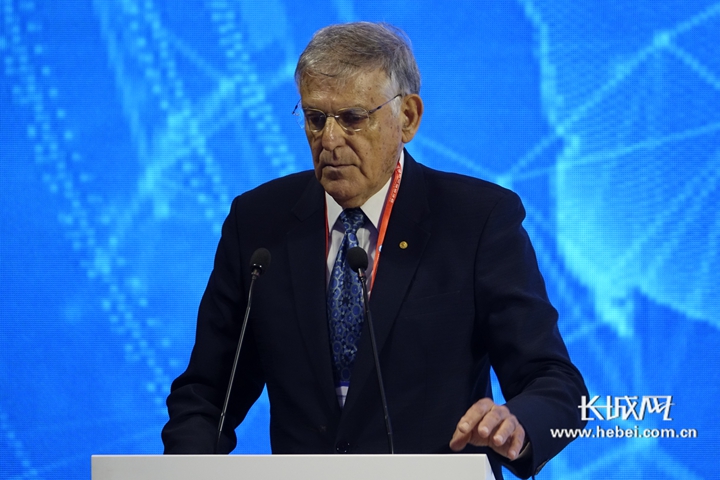 以色列諾貝爾化學獎得主達尼埃爾謝赫特曼正在發表演講。記者張藝萌攝